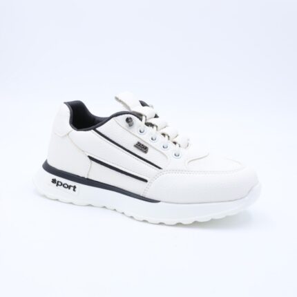 حذاء جلد رياضي بنعل مريح وعملي برباط وهمي لون أبيض