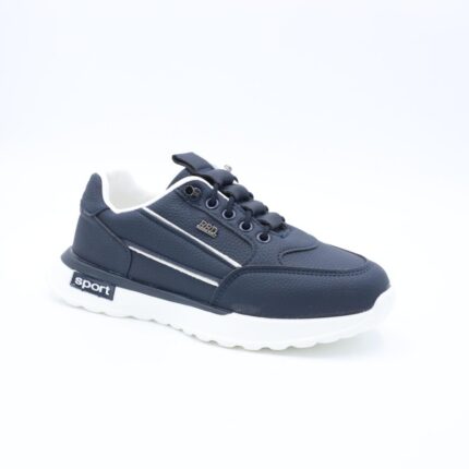 حذاء جلد بنعل مريح وعملي رياضي برباط وهمي لون كحلي وأبيض