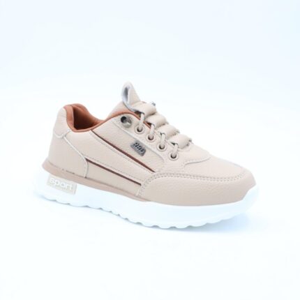 حذاء جلد بنعل مريح وعملي رياضي برباط للأطفال لون بيج