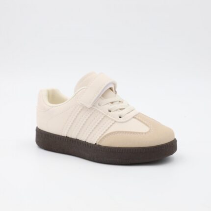 حذاء جلد بشريط لاصق للأطفال لون بيج