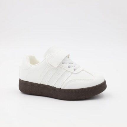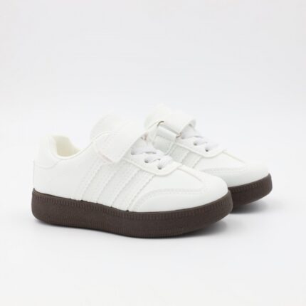 حذاء جلد بشريط لاصق للأطفال لون أبيض