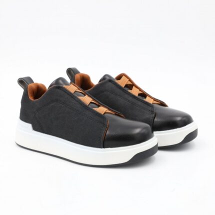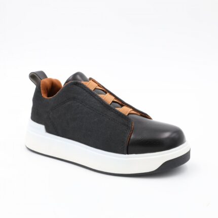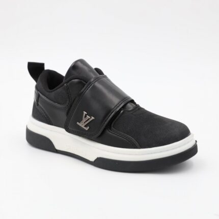بوت سبورت جلد بشريط لاصق لون اسود ونعل ابيض