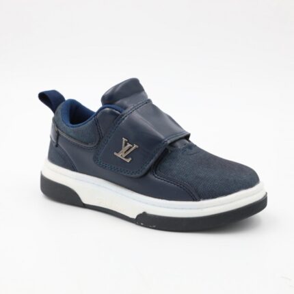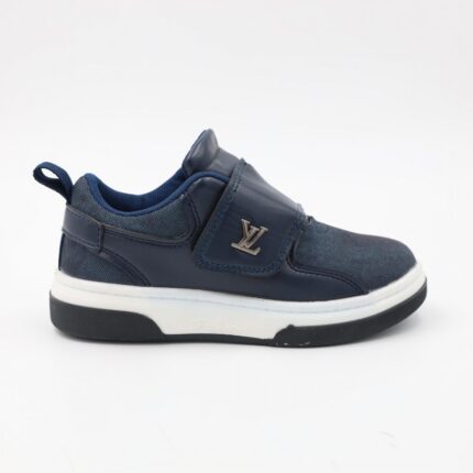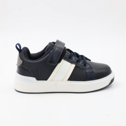 بوت سبورت جلد بشريط لاصق لون كحلي ونعل ابيض