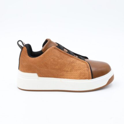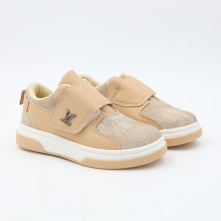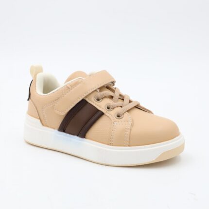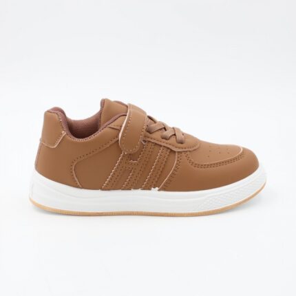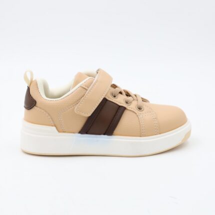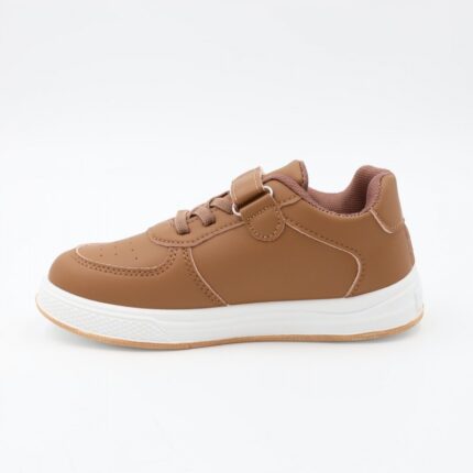 بوت سبورت ولادي بشريط لاصق لون عسلي ونعل ابيض