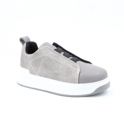 بوت سبورت ولادي بشريط لاصق لون رمادي وكحلي ونعل ابيض