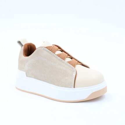 بوت سبورت جلد بشريط لاصق لون بيج ونعل ابيض