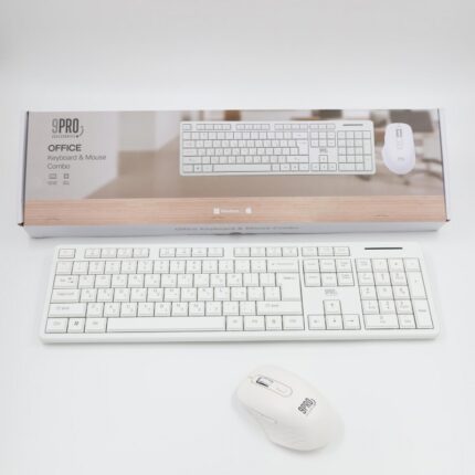 طقم ماوس لاسلكي مع كيبورد يعمل بالشحن من 9 برو لون ابيض