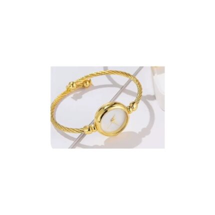 ساعة يد بسوار معدني ذهبي أنيق للنساء تصميم عصري فخم لون ذهبي مع أرضية بيضاء