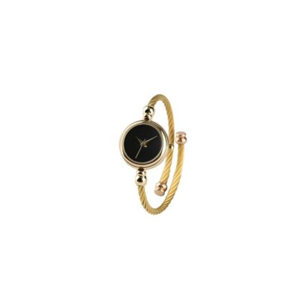ساعة يد بسوار معدني ذهبي أنيق للنساء تصميم عصري فخم لون ذهبي مع أرضية سوداء