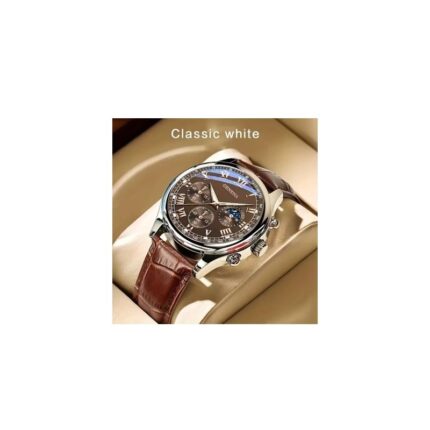 ساعة كوارتز فاخرة للرجال من Geneva حزام جلد لون بني