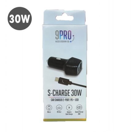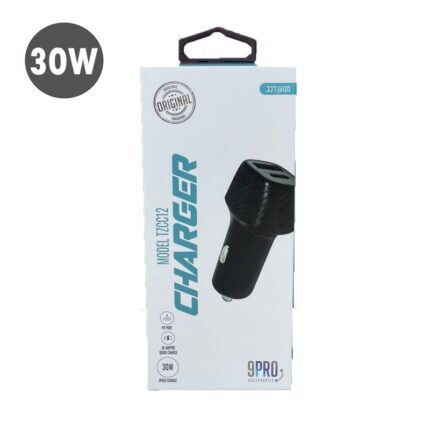 شاحن سيارة لون اسود 30Wمدخلين ( USB/type c)