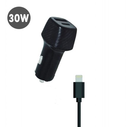 شاحن سيارة مدخلين30W ( USB/type c) مع كابل ايفون اسود