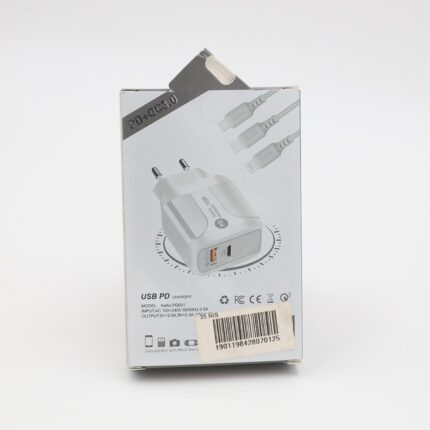 شاحن فونيكس 18 واط بمنفذين مع كابل وصلة مايكرو لون أبيض – Fonix KwKw PD001 18 W Power Adapter