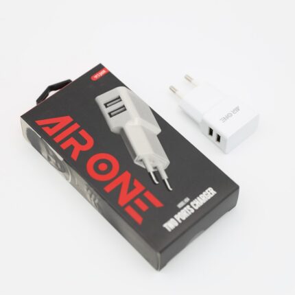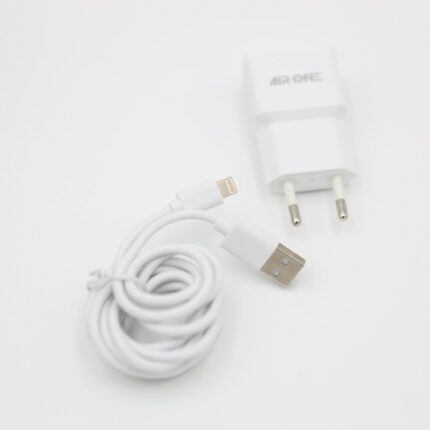 شاحن بمنفذين يو اس بي مع كابل 1.5 م منفذ ايفون من اير ون لون أبيض- AIR ONE USB Charger 12W 1.5M Cable Lightning