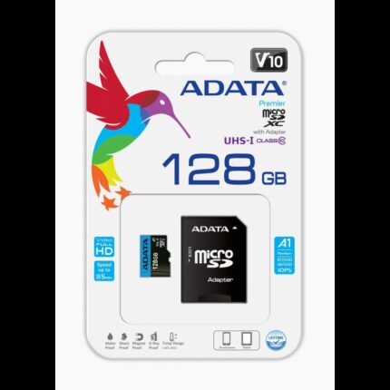 بطاقة ذاكرة من ايه داتا سعة 128 جيجا- ADATA 128GB Premier microSDXC UHS-I / Class 10 V10 A1 Memory Card with SD Adapte