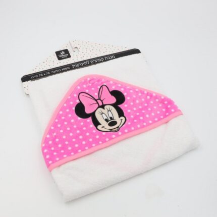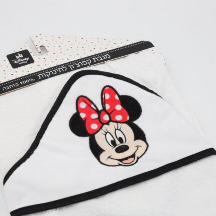 منشفة للإستحمام للإطفال لون أبيض مع غطاء للشعر برسمة ميكي ماوس