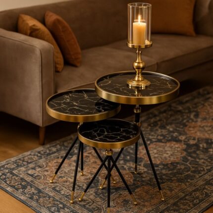 طقم اسكملات خشبي 3 قطع لون أسود