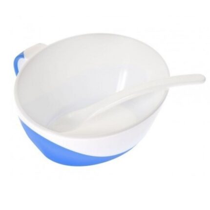 صحن طعام مع ملعقة للأطفال لون أزرق 350 مل
