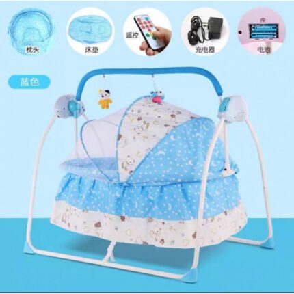 سرير اطفال متنقل مع موسيقى لون ازرق
