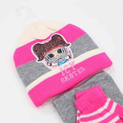 بكج LOL طاقية + كفوف + لفحة لون ابيض + فوشي