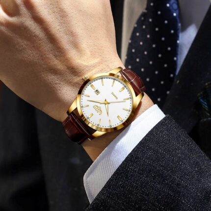 ساعة يد رجالية فخمة تضيء في الظلام – حزام جلد فخم لون بني- ماركة LIGE