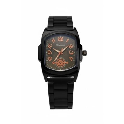 ساعه يد شبابيه جلد لون عسلي مع ارضيه اسود