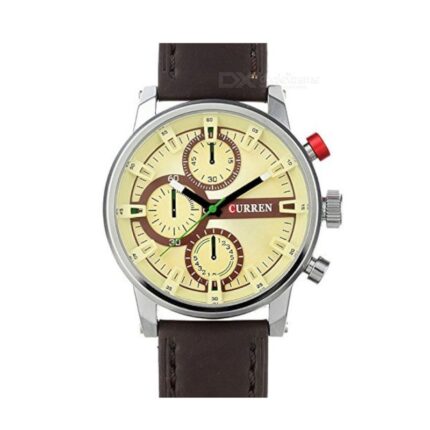 ساعه يد شبابيه جلد لون بني مع ارضيه بيج