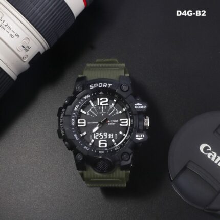 ساعة يد رقمية رياضية للرجال حزام سيليكون لون أخضر ماركة Sport Shock