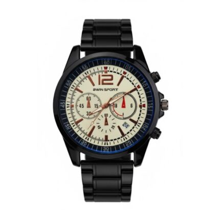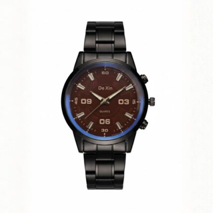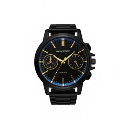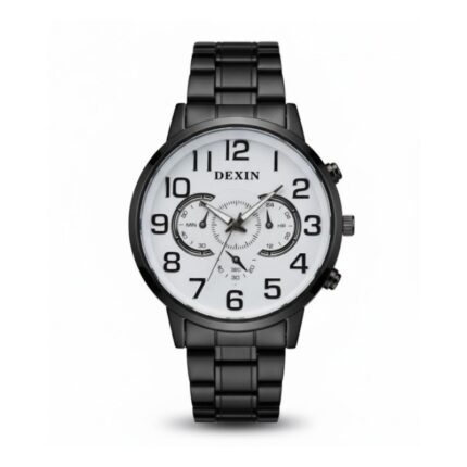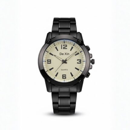 ساعة يد رجالية بتصميم عصري حزام سيليكون متين لون أسود