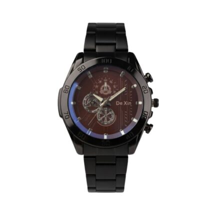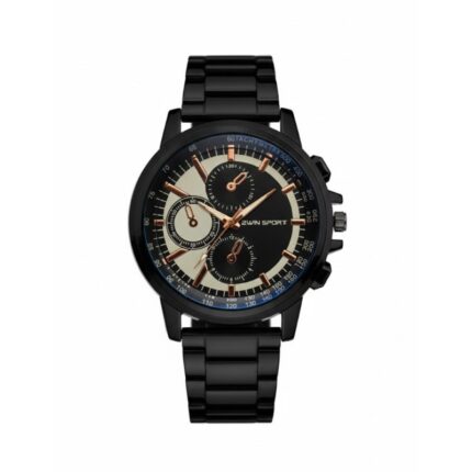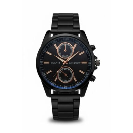 ساعه يد رجالية دائرية ستانلس ستيل لون أسود