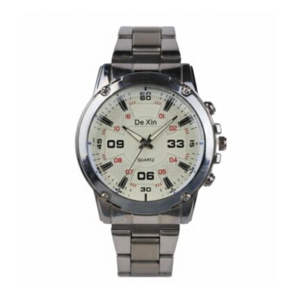 ساعه يد رجالية دائرية ستانلس ستيل لون فضي