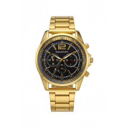 ساعه يد رجالية دائرية ستانلس ستيل لون ذهبي