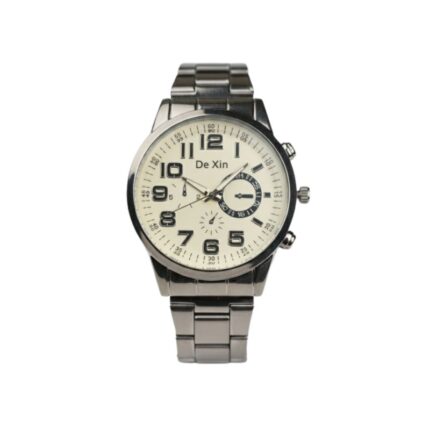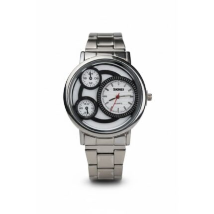 ساعه يد رجالية دائرية ستانلس ستيل لون فضي