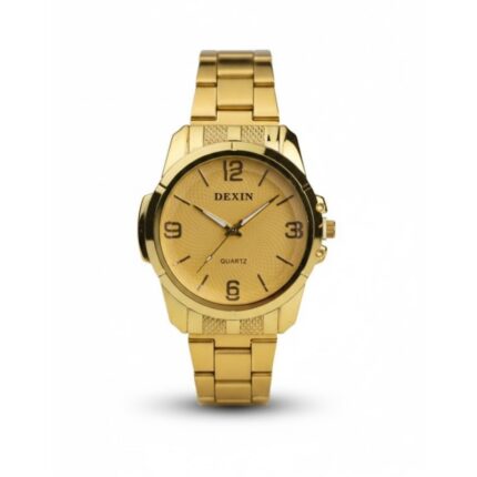 ساعه يد رجالية دائرية ستانلس ستيل لون ذهبي