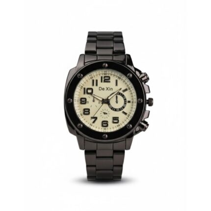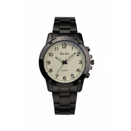 ساعه يد رجالية دائرية ستانلس ستيل لون أسود