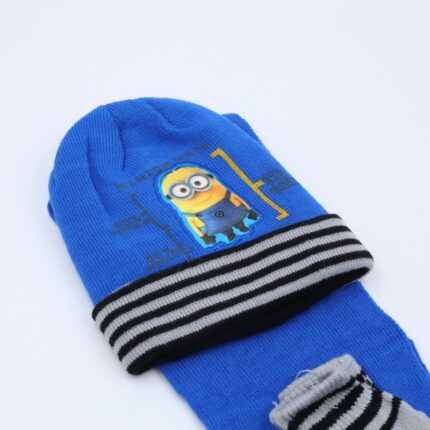 طاقية للأطفال مع لفحة وكفوف لون أزرق غامق