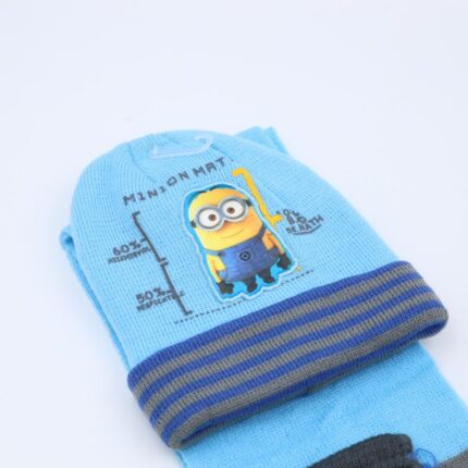طاقية للأطفال مع لفحة وكفوف لون أزرق فاتح