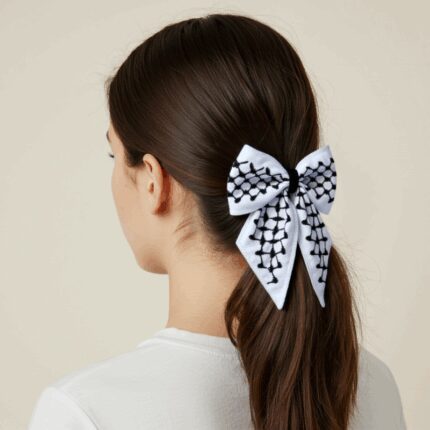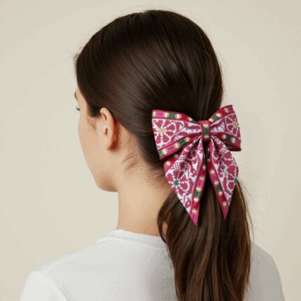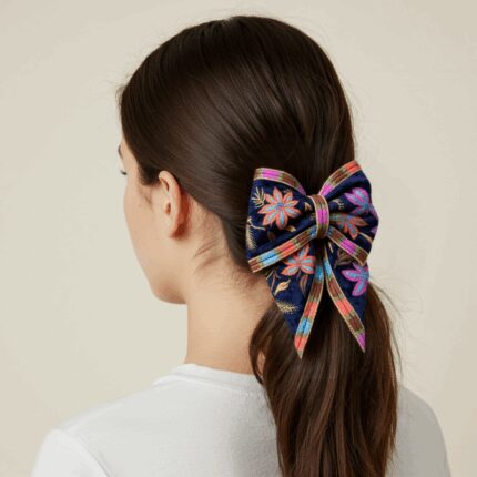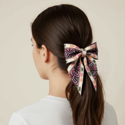 فيونكة للشعر تطريز لون بني وذهبي وخمري
