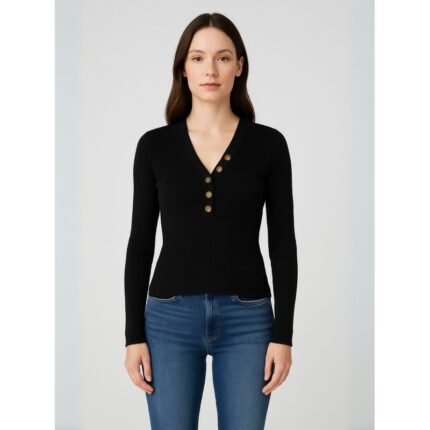 بلوزة صوف للنساء لون أسود