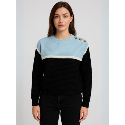 بلوزة صوف للنساء لون أسود و أزرق