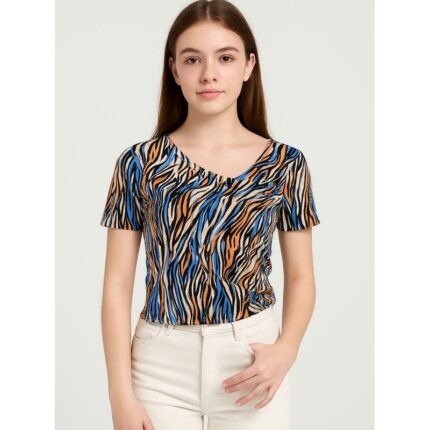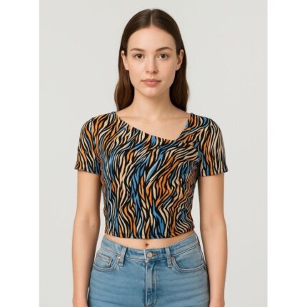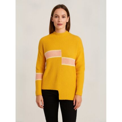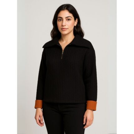 بلوزة شتوية طويلة للنساء لون بني ورمادي