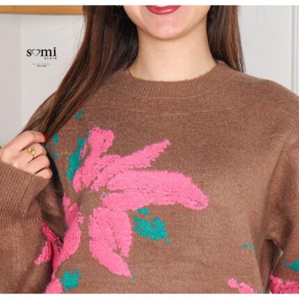 بلوزة صوف بتصميم رسومات ستاتي لون بني