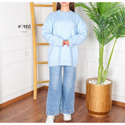 بلوزة صوف اوفر سايز بأكمام طويلة للنساء لون زهري