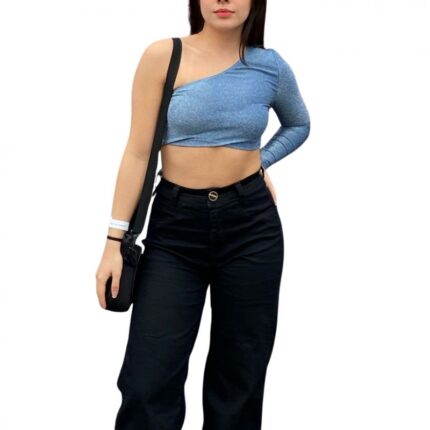 بلوزة نص كتف للنساء لون أزرق