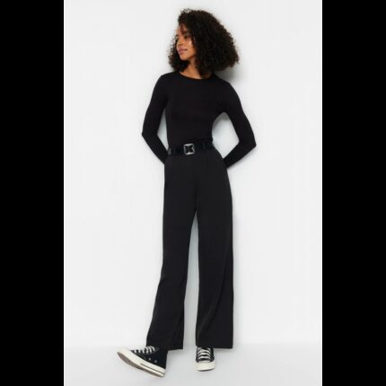 بنطلون تركي خصر مرتفع وساق واسعة للنساء لون أسود