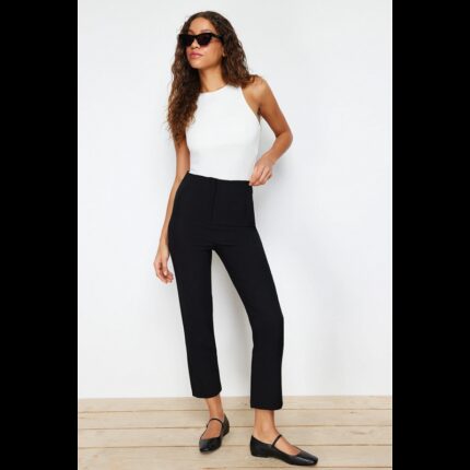 بنطلون تركي بخصر عالٍ طول الكاحل للنساء لون أسود