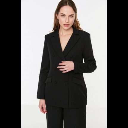 قميص تريندول منسوج بأكمام طويلة شفافة للنساء لون أسود