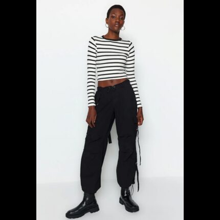 بلوزة تريندول محبوكة قابل للتمدد للنساء لون أسود وأبيض