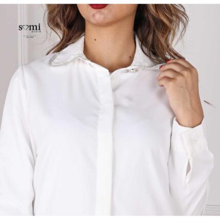 قميص بأكمام طويلة قبة زخرفة اشكال وأزرار فضي من Sami boutique للنساء لون أبيض