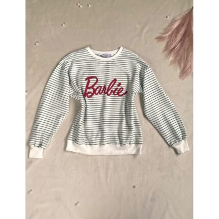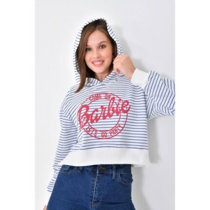 بلوزة خريفية مع طاقية مخططة لون أزرق
